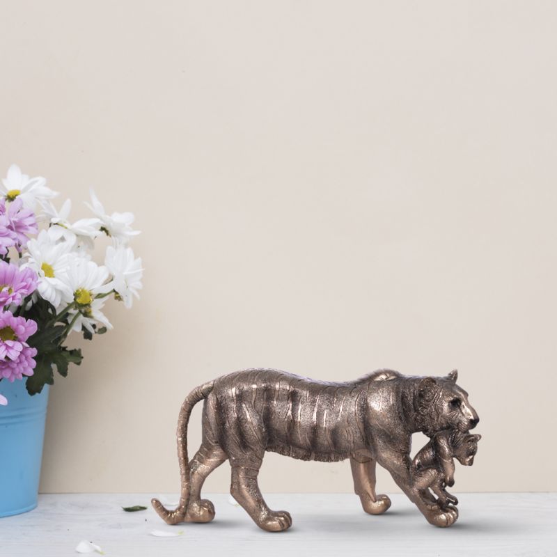 Bring the raw beauty and strength of nature into your home with this stunning Rustic Brown Polyresin Lioness with Cub Idol. Skillfully crafted from high-quality polyresin, this majestic piece beautifully captures the protective bond between a mother lioness and her cub. The earthy, rustic brown finish adds a touch of warmth and natural elegance to any space, making it the perfect addition to your living room, study, or entryway.