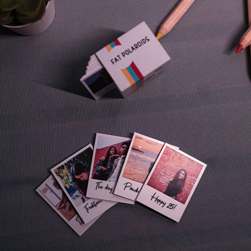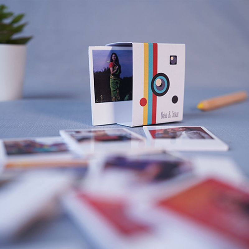 Name printed cover design complementing the colorful polaroids, making a perfect gift for your photo-freak friends.