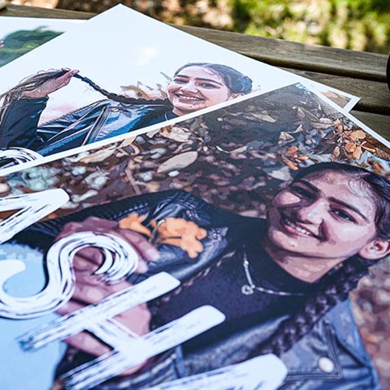 "Set of A3-sized posters on a textured sheet, with a snazzy posterized edit and name!