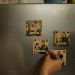 "Set of vintage fridge magnets, with processed ancient texture cards for a distressed look.