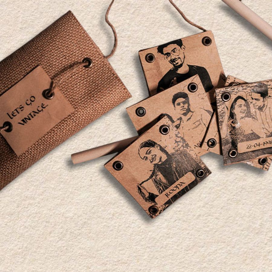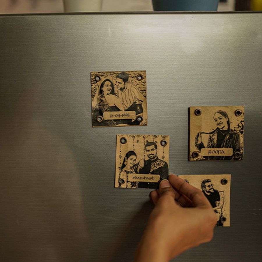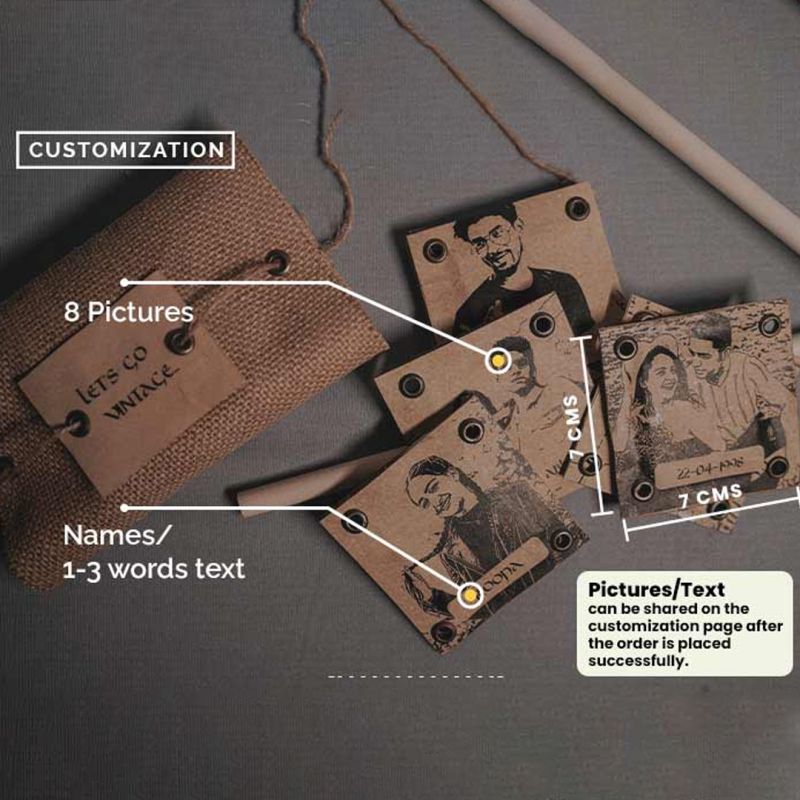 A showcase gift that has a vintage effect with your picture and names. An accessory that showcases an adorable arrangement of pictures on your fridge in a vintage way!"