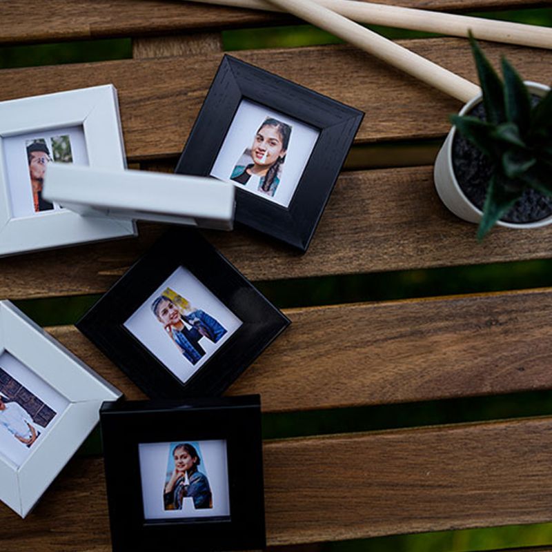 "Set of mini frames designed with pictures blended in the initial of your dear one’s name.