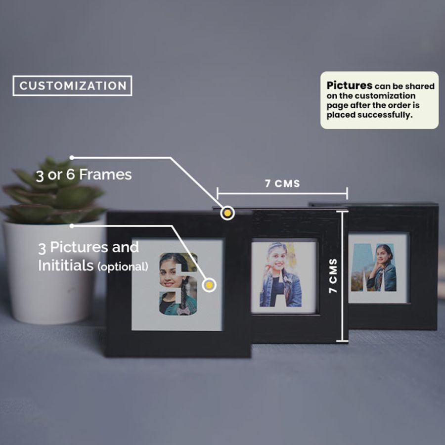 Set of mini frames designed with pictures blended in the initial of your dear one’s name (Set of 3 Black)