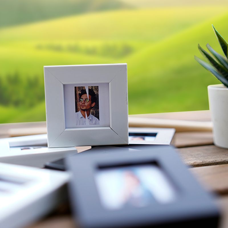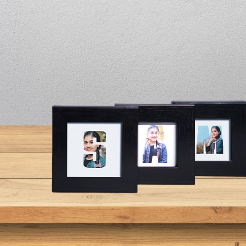 "Set of mini frames designed with pictures blended in the initial of your dear one’s name.
