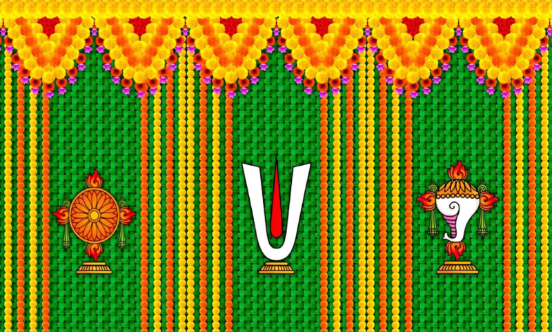 Shanku Chakra Namalu Design Backdrop 5x8 Ft