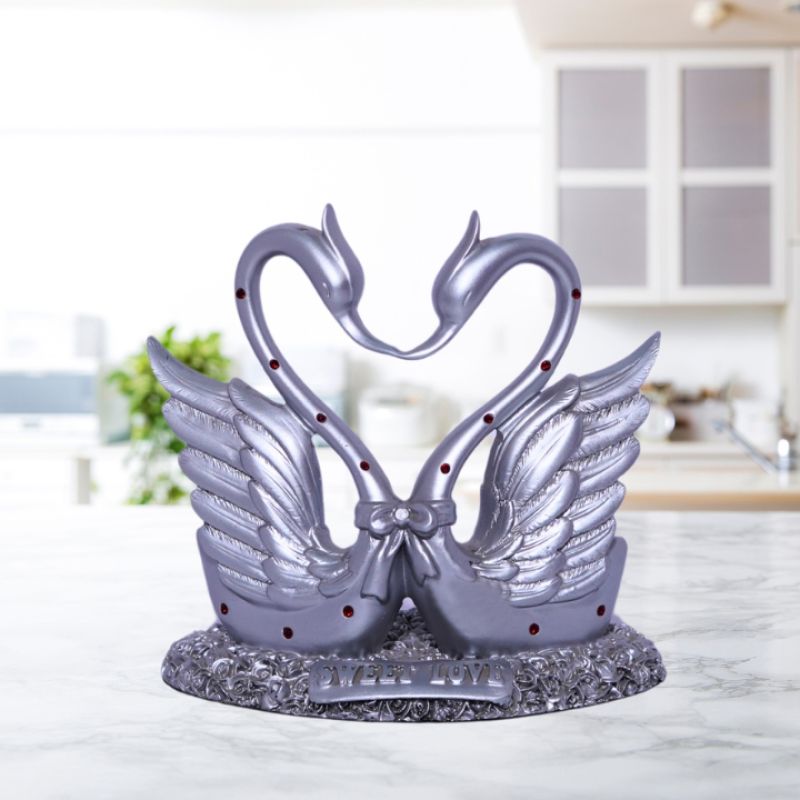 Add a touch of elegance and grace to your space with the Silver Plated Swan Pair Showpiece—a stunning décor piece that symbolizes love, beauty, and harmony. Featuring two swans elegantly poised together, this silver-plated showpiece is the perfect addition to your home décor, office table, or living room. Whether you're looking to enhance your home with a sophisticated touch or searching for the ideal gift, this exquisite swan pair will instantly elevate any room with its timeless charm.