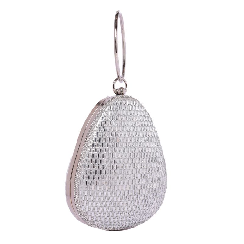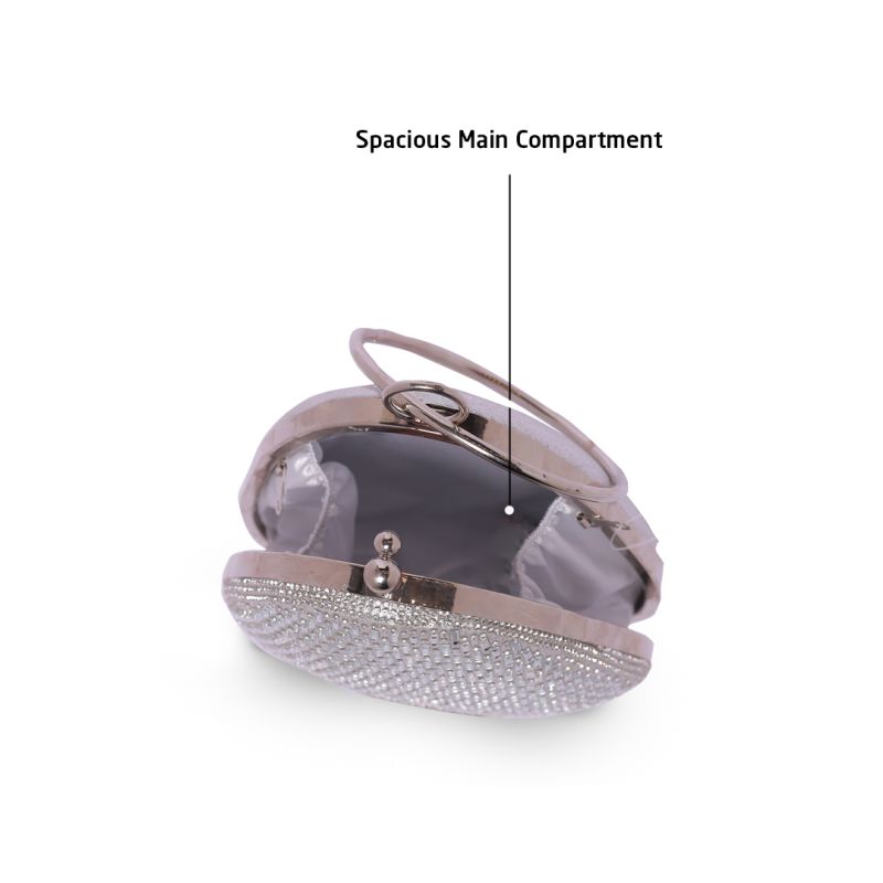 Silver Rhinestone Pastel grey Round Handle Clutch Bag with Push Closure for Women