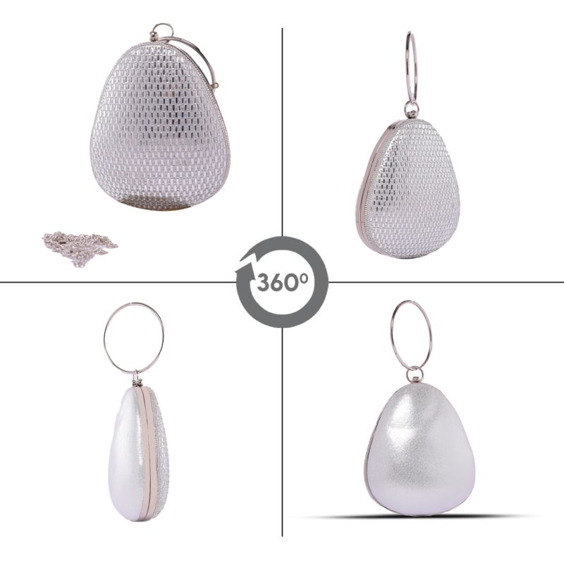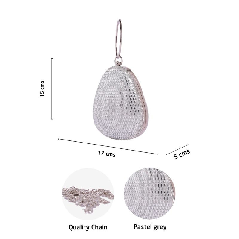 The Silver Rhinestone Pastel Grey Round Handle Clutch Bag with Push Closure for Women is a glamorous and sophisticated accessory, designed for those who love elegance with a touch of sparkle. Featuring shimmering rhinestones, a pastel grey finish, and a chic round handle, this clutch is the perfect statement piece for weddings, evening parties, and formal occasions.This stylish clutch bag is designed to elevate your outfit with a blend of modern elegance and classic charm.