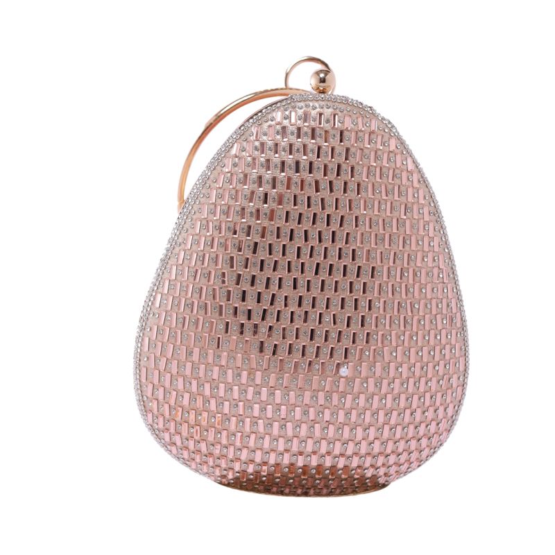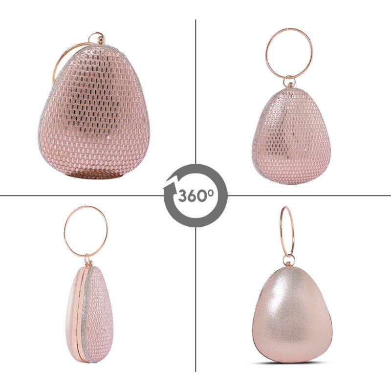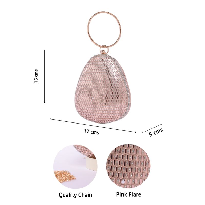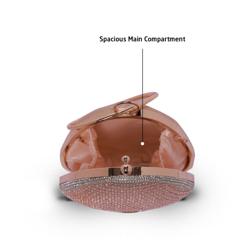 Silver Rhinestone Pink Flare Round Handle Clutch Bag with Push Closure for Women