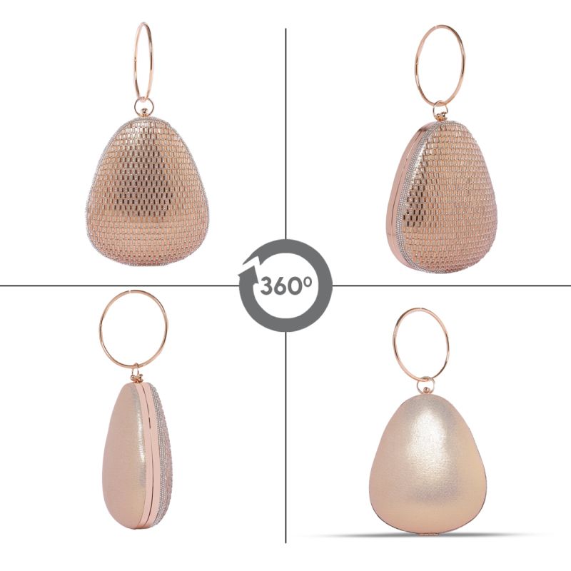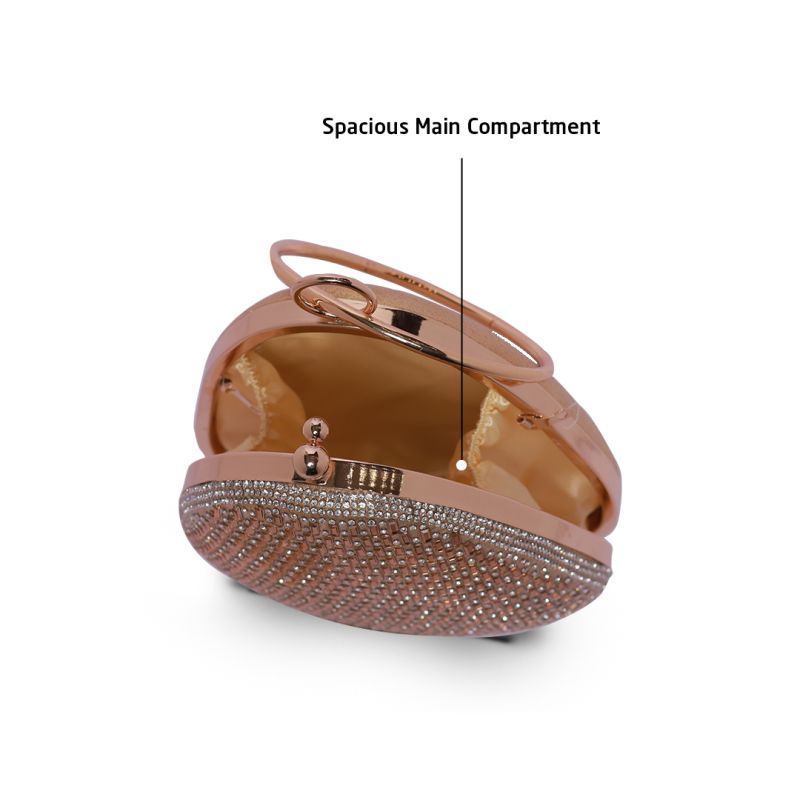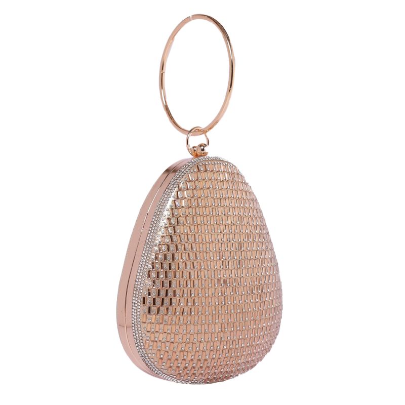 Silver Rhinestone Pinkish Tan Round Handle Clutch Bag with Push Closure for Women