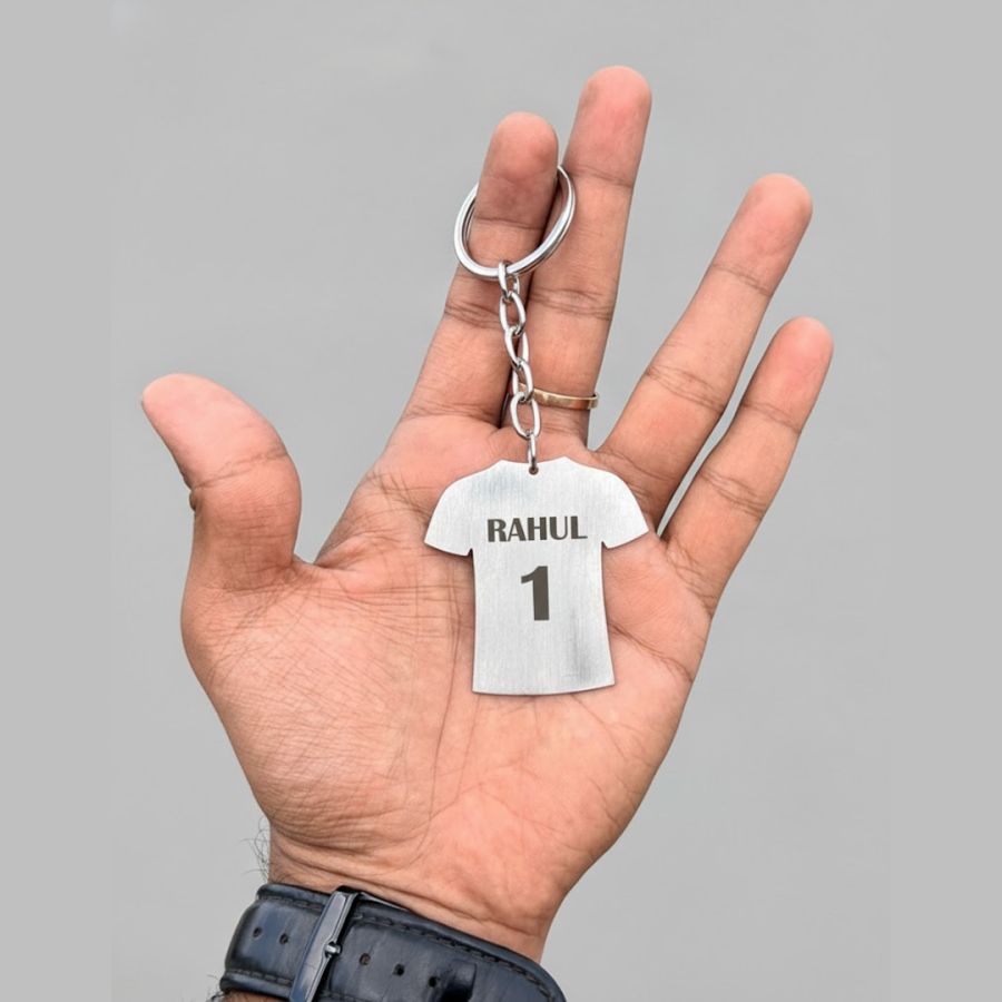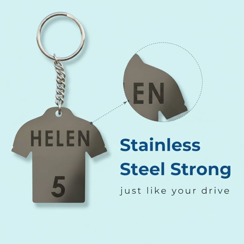 Carry your team spirit wherever you go with this Personalized Jersey T‑Shirt Steel Keychain. Crafted in durable stainless steel and designed in the shape of a classic sports jersey, this keychain can be customized with your name and favorite number. Whether it’s a gift for a sports fan, a keepsake for your own locker keys, or a way to show support for your favorite player, this keychain combines style, personalization, and durability. The polished finish ensures it looks sleek on bags, keys, or backpacks—plus, the steel build resists rust and wear so it lasts.