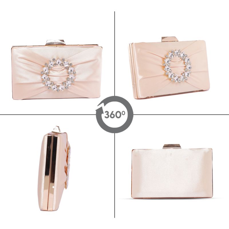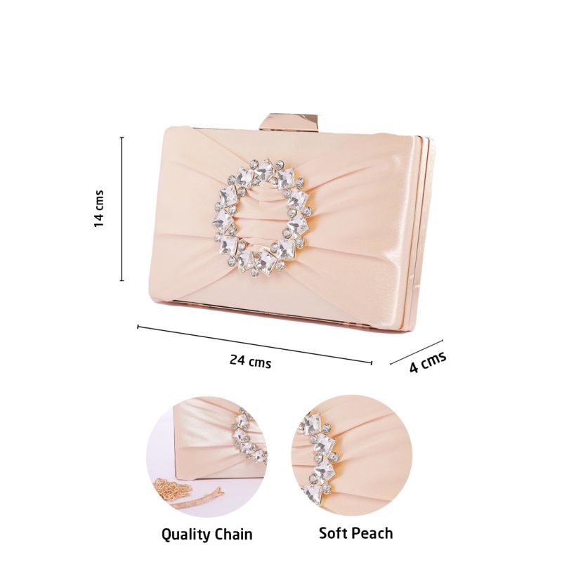 Stylish Bridal Purse with Gold Clutch Soft Peach for Women