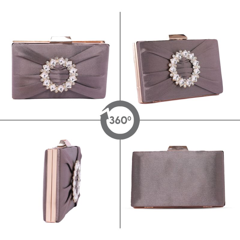 Stylish Bridal Purse with Gold Clutch Warm Grey for Women
