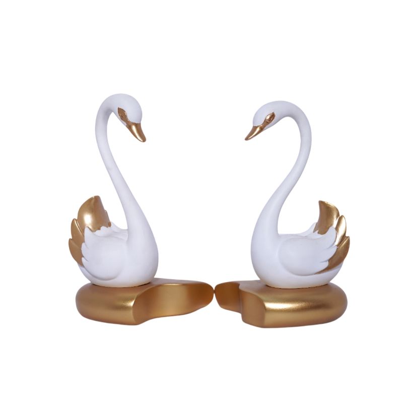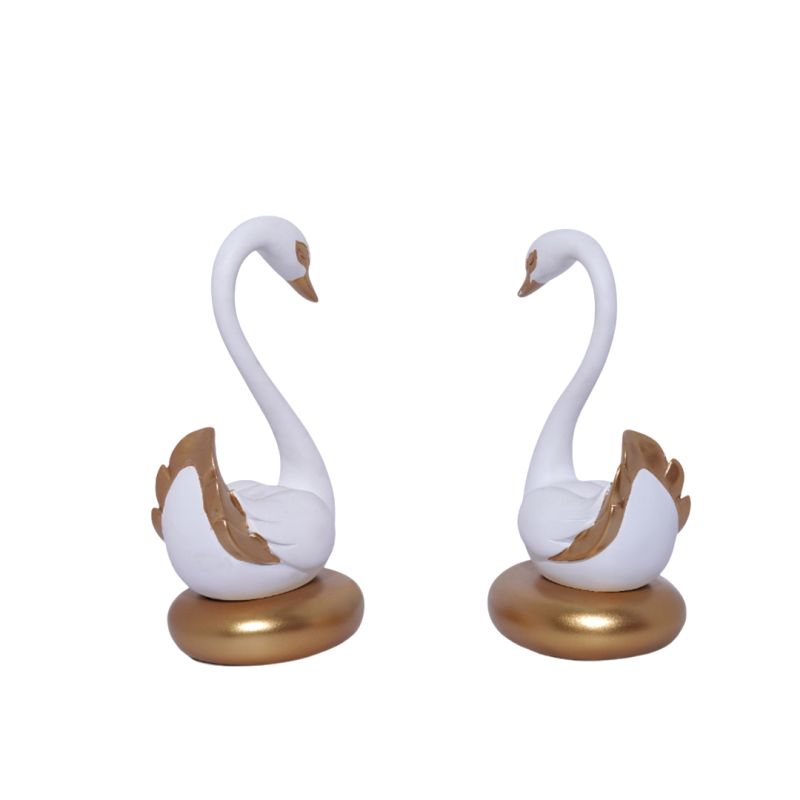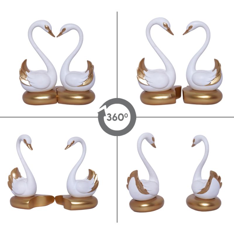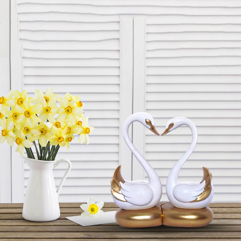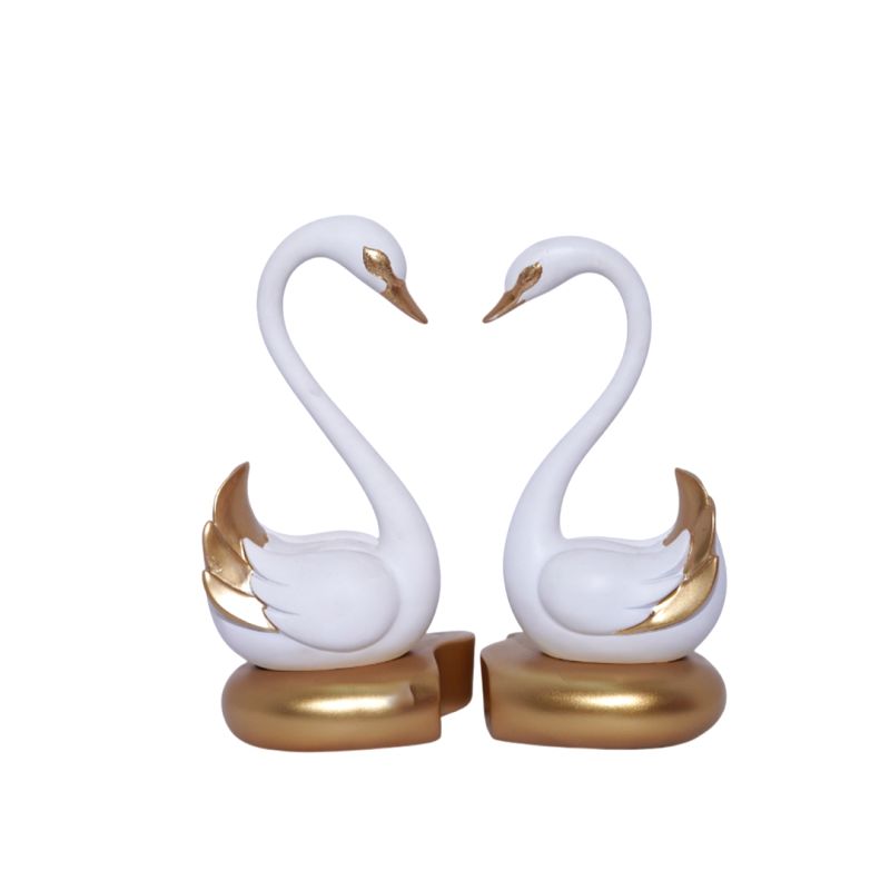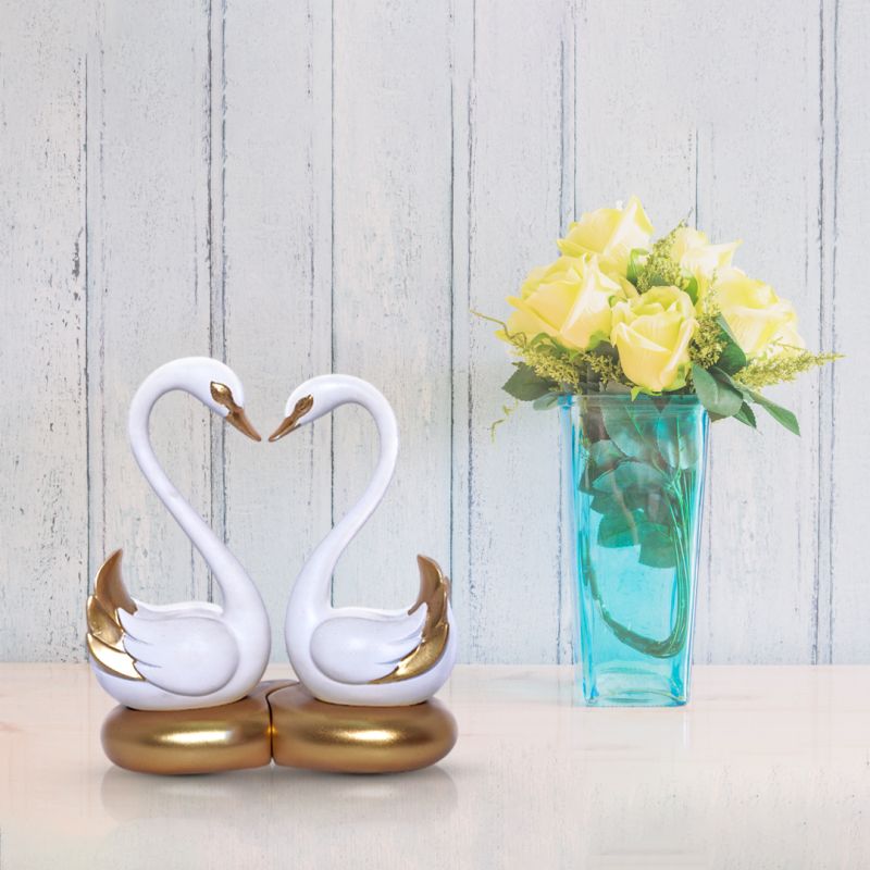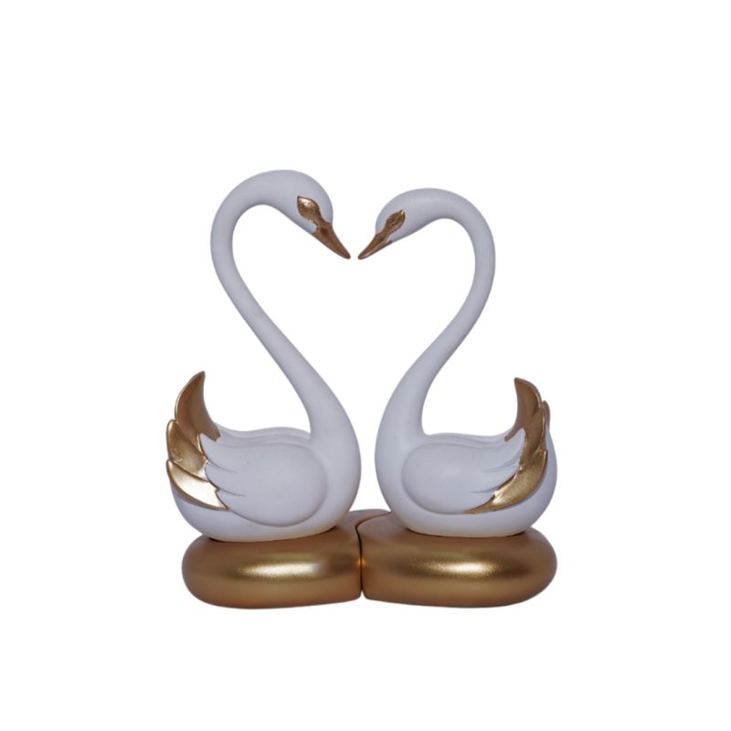 Swan Pair in White and Gold Figurine Decorative Showpiece for Home/Office Decor