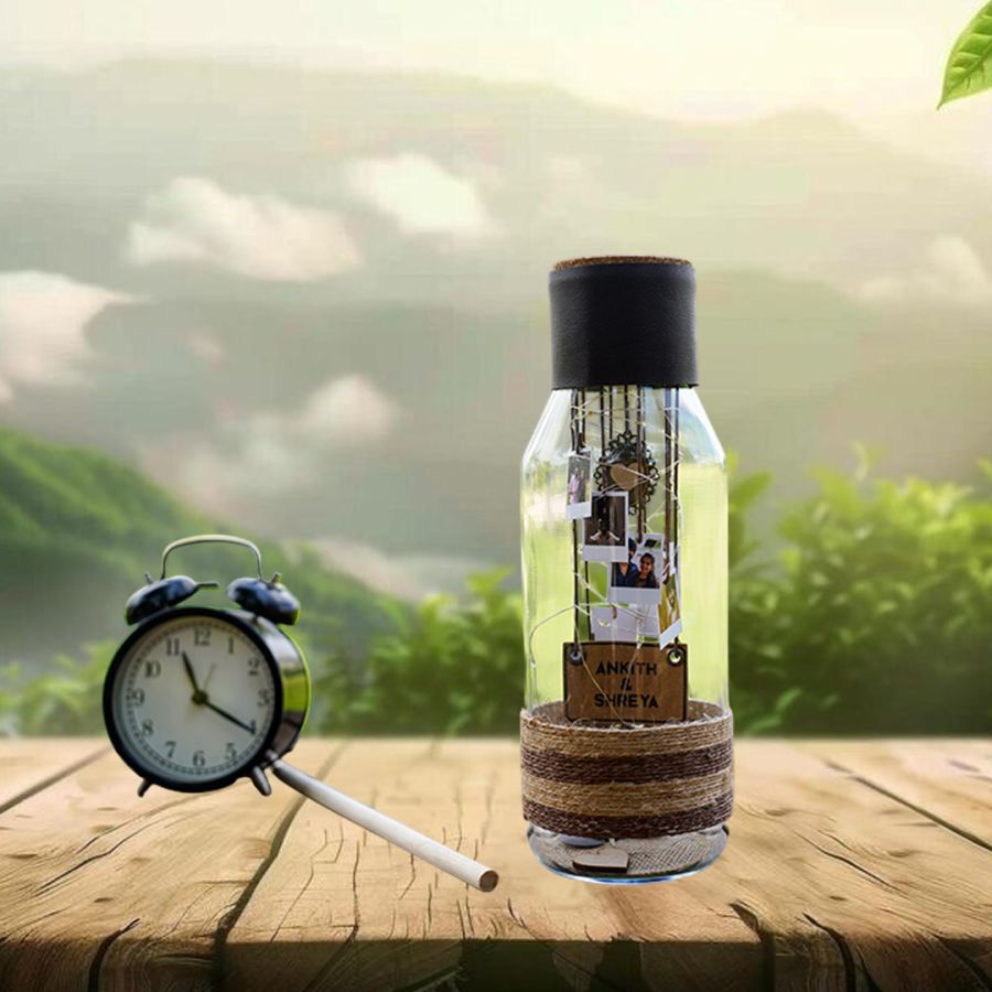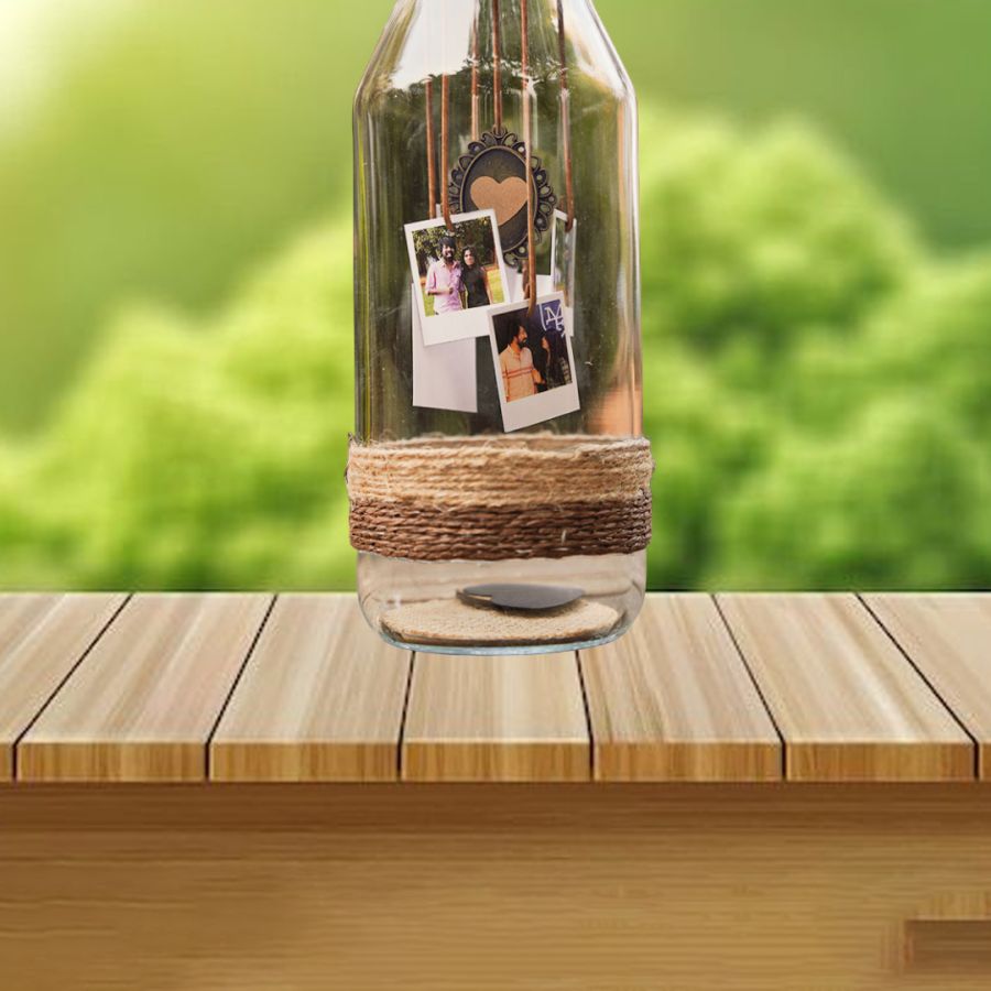 A lavish craft of tiny Polaroids and your names in an exotic glass jar.