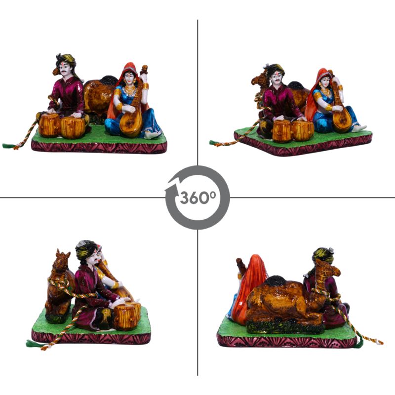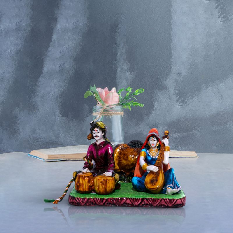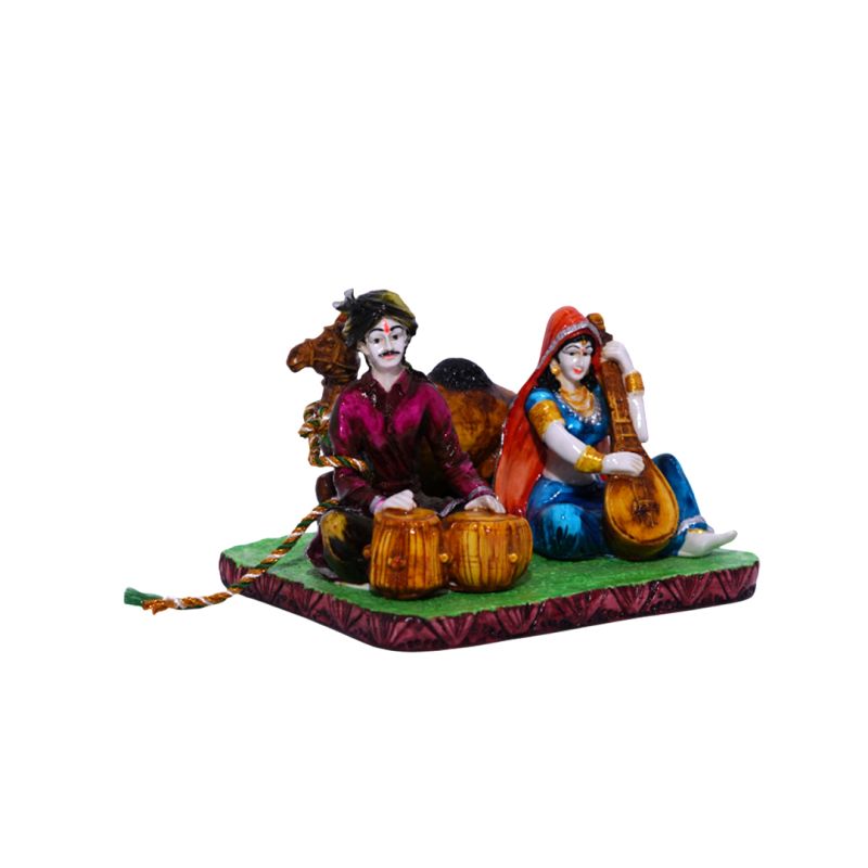 Traditional Village Rajasthani Lady and Man Playing Tabla & Veena Showpiece for Home Decor
