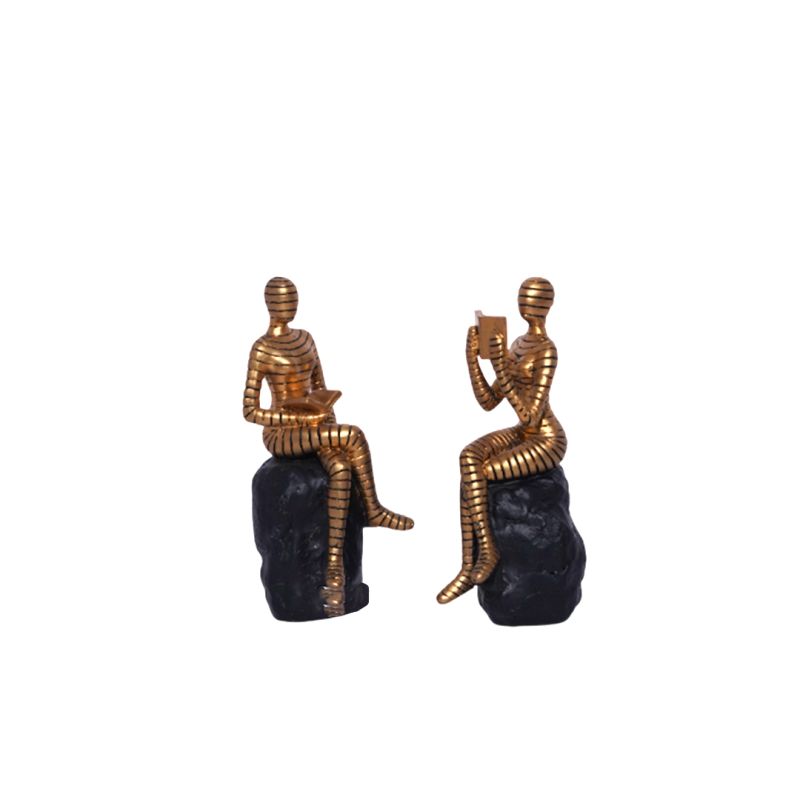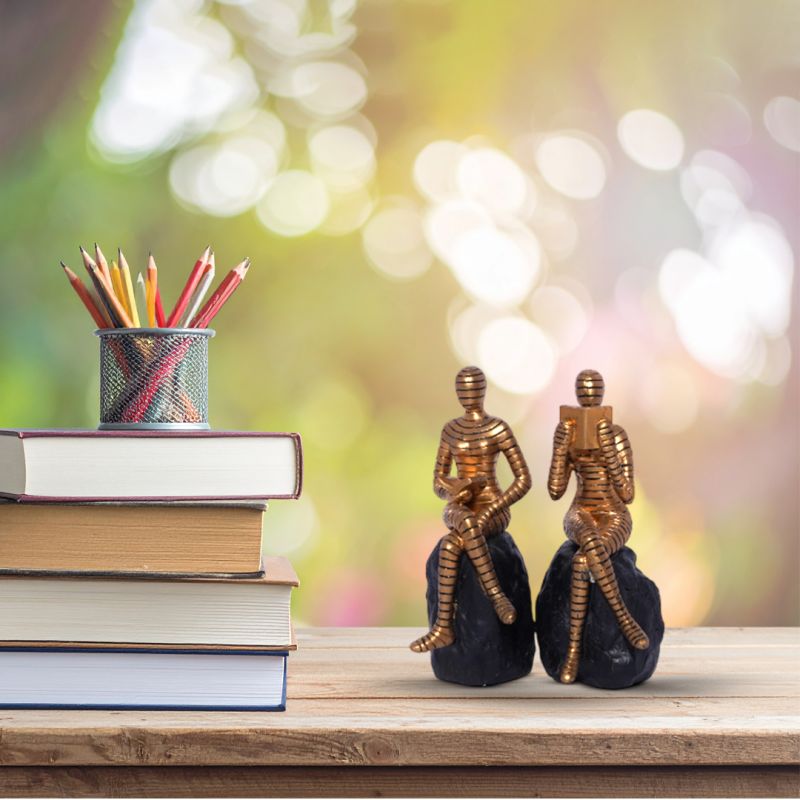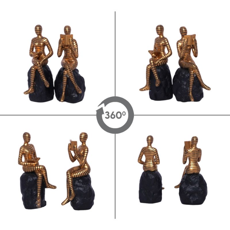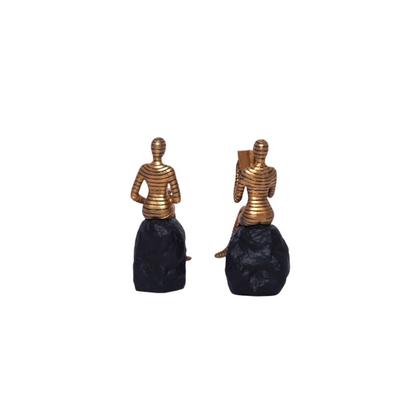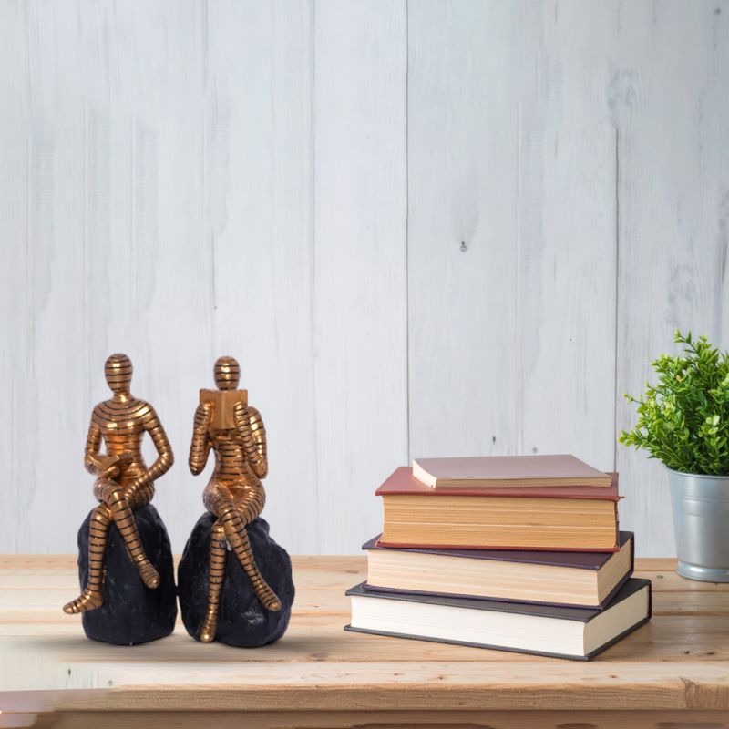 Unique Artefact Seated on Rock Reading a Book Decorative for Center Table or Shelf