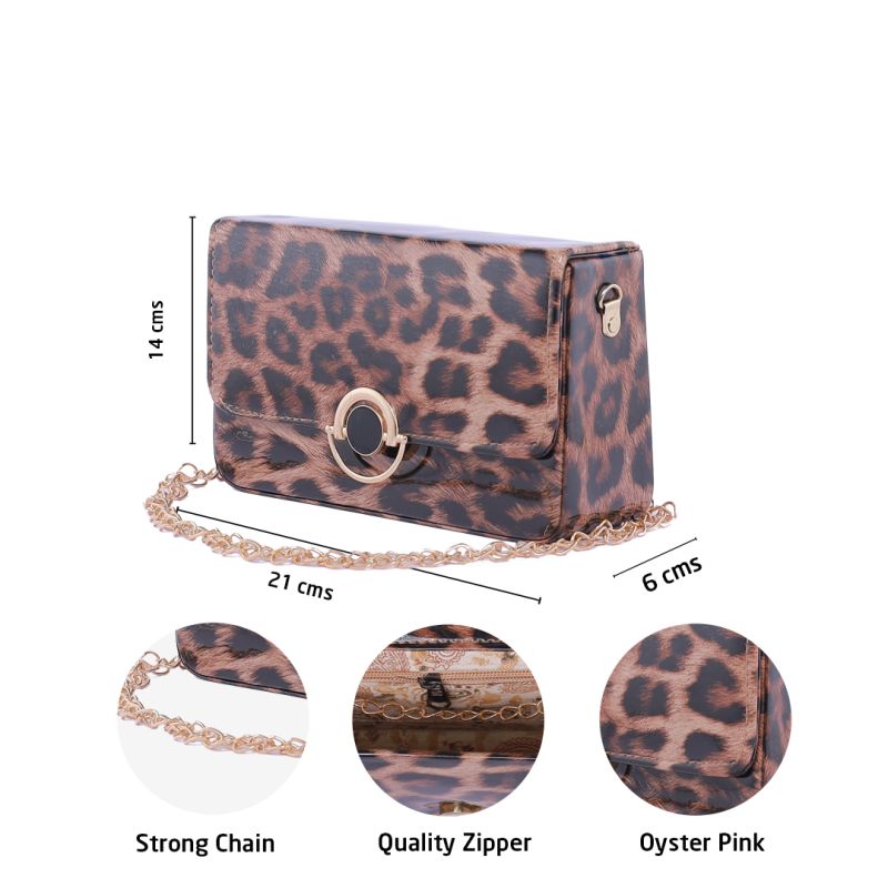 If you’re looking for a standout accessory that combines functionality with a fierce design, a oyster Pink leopard-printed sling bag is a must-have. Pair it with your wardrobe essentials, and let your accessory do the talking.