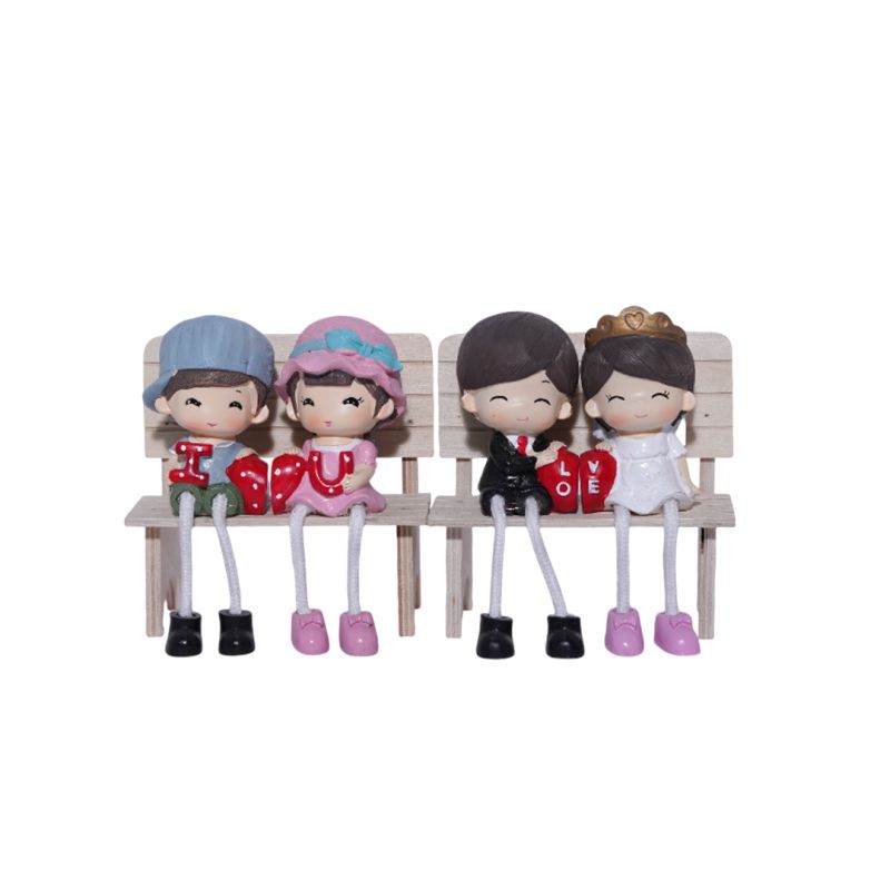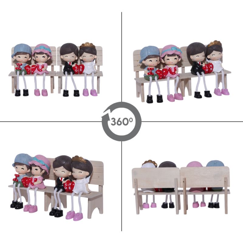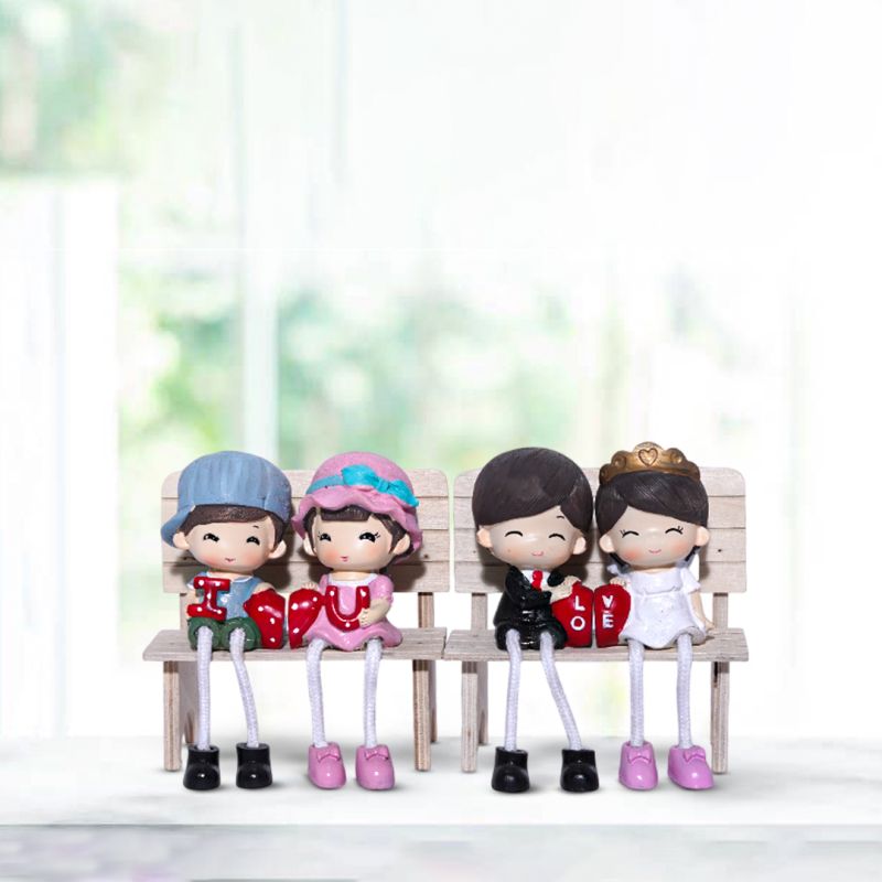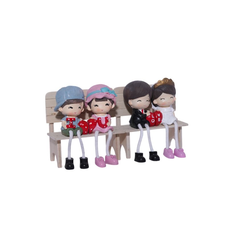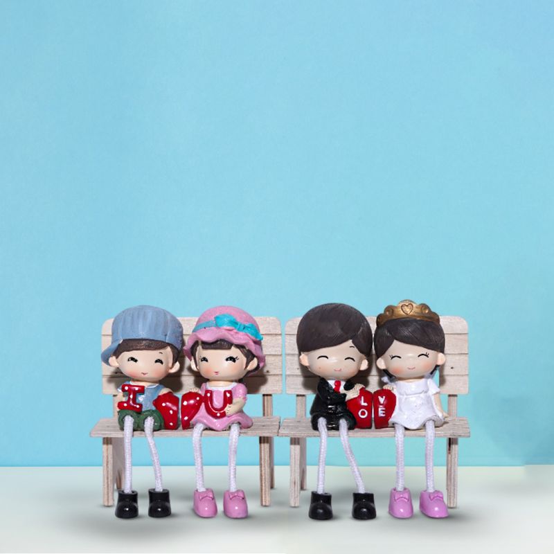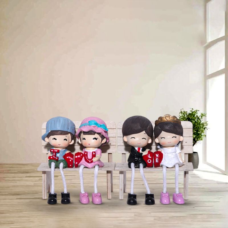 "Celebrate love and togetherness with this heartwarming Set of 4 Hanging Legs Couple Figurines, designed to sit playfully on shelves, cabinets, or ledges. Each couple is seated on a mini bench, their legs dangling freely — adding a touch of romance, joy, and fun to your décor.