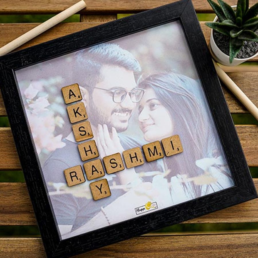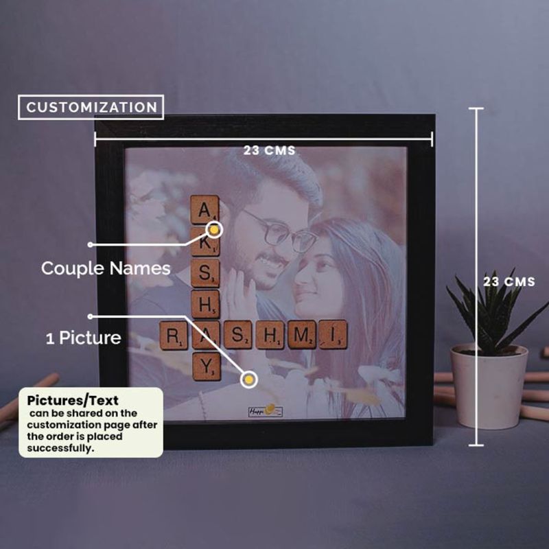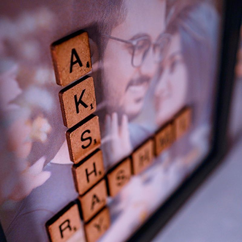 Your names arranged with scrabble letters on a love doodled background With Picture Version